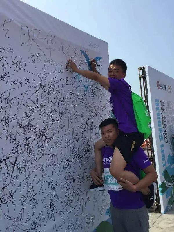 签到板上,“映华必胜”四个大字彰显了大家必赢的勇气与信心。