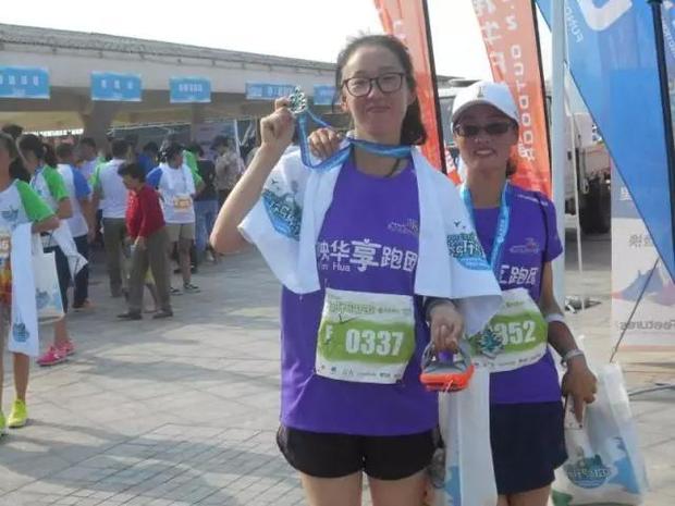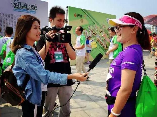 映华享跑团成员兴高采烈地接受着媒体记者的采访。