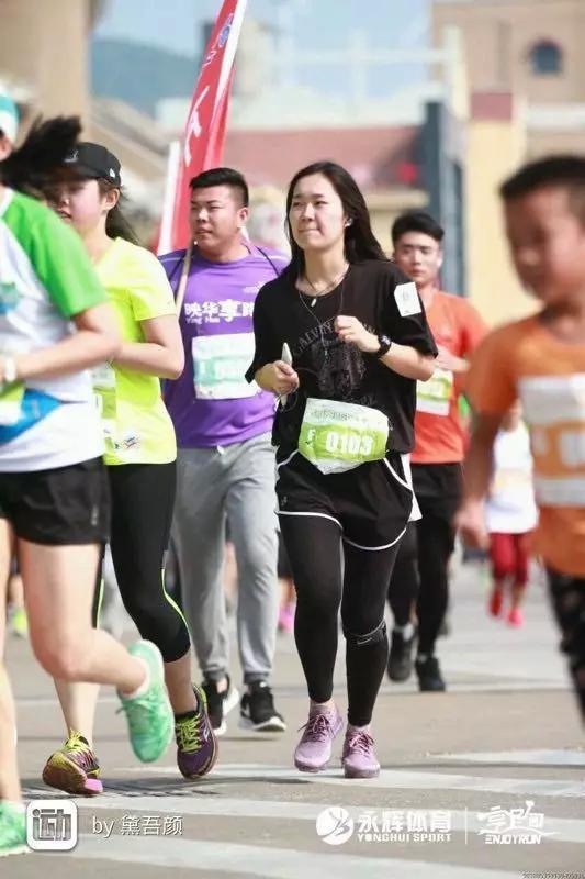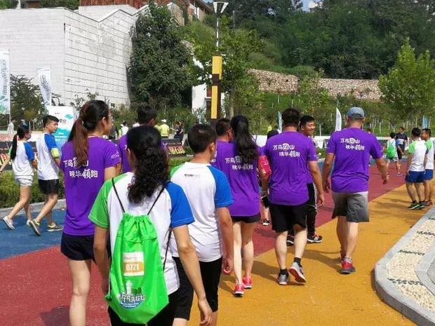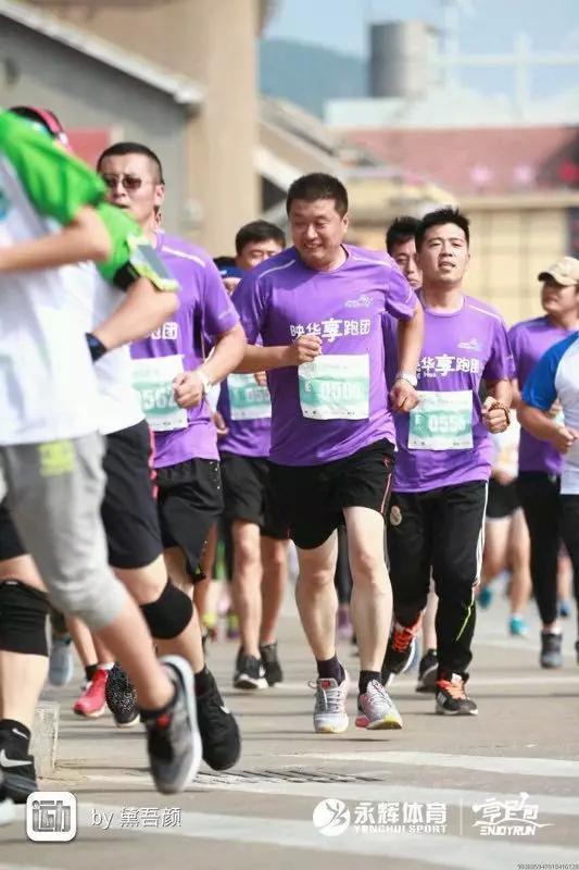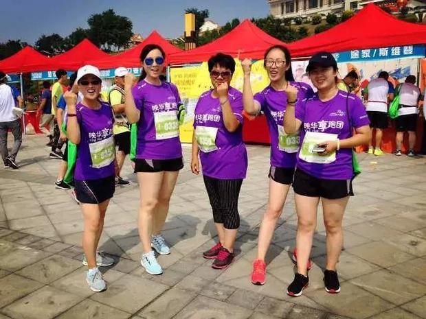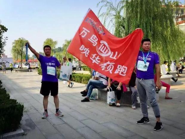 看,映华享跑团的成员们身着统一服装,排着有序的队伍走进赛场。