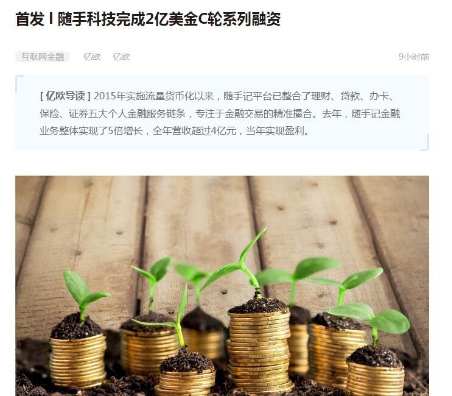 从网易新闻与亿欧新闻中可知,随手科技旗下的随手记系列产品目前已是国内最大的个人理财APP,用户规模接近3亿,超过后十位同类产品的总和近一倍,品类市场占有率接近70%,并且由于市场占有率和产品矩阵与美国的intuit极为相似,随手记也被称为“中国的intuit”。就在去年,随手记金融业务整体实现了5倍增长,全年营收超过4亿元,当年实现盈利。