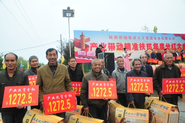 自2015年天子果蔬被政府选定为本地区的重点扶贫帮扶单位以来,积极履行扶贫帮困责任。创造贫困户就业岗位、优先收购贫困户种植产品、安排贫困户季节性劳务打工、为贫困户发放扶贫资金与物资、组织贫困户脱贫致富等;为300多户、上千人解决了疾病、贫困与失业问题。8个村320户1120人领到了扶贫产业分红共计53余万。