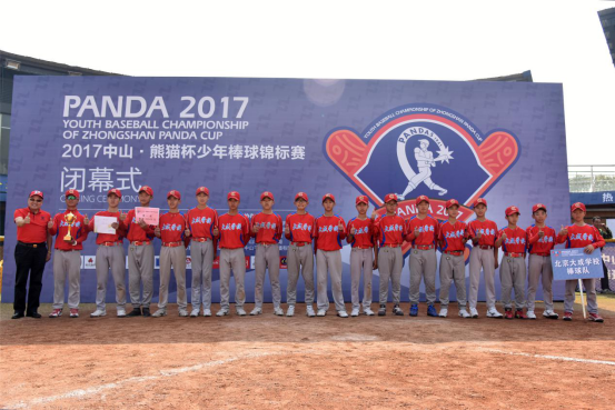 12月10日,2017中山·熊猫杯少年棒球锦标赛在中山市熊猫少年棒球场圆满落下帷幕。冠军被北京大成学校棒球队获得,亚军为高雄寿天棒球队,季军则是中山熊猫少棒队。在5天的紧张激烈的比赛中,每一位少棒队员都全力以赴参与比赛,肆意挥洒汗水,将历经一个世纪传承“拼命追击 死缠到底”的“熊猫精神”展现得淋漓尽致,让“熊猫精神”焕发出更强大的生命力。