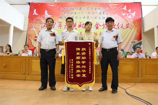 受奖学生向赖孝烈主席赠锦旗