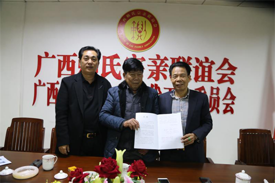 (世界赖氏总会常务副会长赖松谷、执行会长赖卫东到广西宗亲会考察工作)
