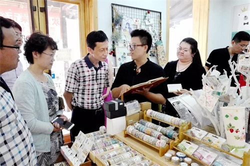 在映华集团旗下壹海忆城新文艺空间,极富创意的旅游纪念品,如刘公岛、灯塔公园钥匙环,手绘语音导航威海地图、文登圣旨胶带、包含威海方言文化的民俗红包等,引起了大家的强烈兴趣,大家边看边讨论,对共同打造“蓬莱有礼”城市品牌形象店充满了期待。