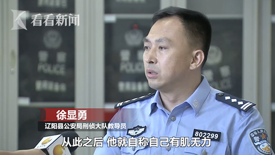 辽阳县公安局刑侦大队教导员徐显勇:“06年在沈阳市辽中县现在叫辽中区有一起抢劫绑架案件,他的同案都因为这个案件判刑了,但他当时患有脑部疾病,没有被公安和司法机关收押。从此之后,他就自称自己有肌无力,而且说全国只有三例。”