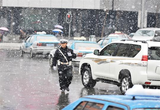 【中国经济新闻联播哈尔滨讯 记者 王吉珍 朱淑英 张 申】10月27日,冰城哈尔滨迎来今年入冬前首场降雪,尽管雪花落地即融化,比以往时候来得也晚些,但初雪的到来依旧令市民兴奋不已。时断时续的雪花初降北国冰城,哈尔滨也渐入冬季。一场久违的小雪却热了网络所有的朋友圈,下雪了,道路结冰预警来袭。受雨雪冰冻恶劣天气的影响,道路积雪结冰,极易引发交通事故,交通安全管理形势非常严峻。为切实保障过往车辆和行人的交通安全,我们冰城的交通民警冒雪值勤奋战在第一线。