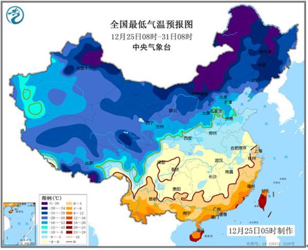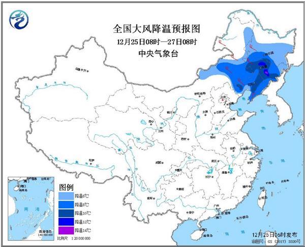 中央气象台12月25日06时继续发布寒潮蓝色预警: