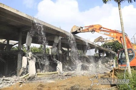 据介绍,该违建楼房位于翰林镇翰林村委会十字路口处,建筑面积1192平方米,违法占地面积596平方米。经查,该栋建筑未办理用地审批手续,已经违反了《基本农田保护条例》第十七条的规定。定安县执法人员发现该情况后,曾对该违建的当事人下达责令整改通知书,责令其在规定时间内恢复土地原状。然而,当事人接到通知书后逾期拒不执行。根据《基本农田保护条例》三十三条之规定,执法部门决定依法实施强制拆除。