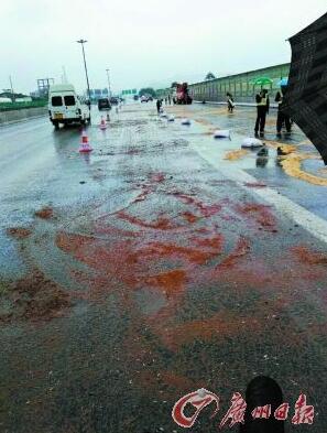 油罐车漏油了,司机却不知道,引发了一串的交通事故。这发生在昨天早上7点50左右。当时车正行驶在广深高速北行厚街至虎门五点梅路段。漏油点从广深高速厚街入口开始,污染了约4公里路面。漏油导致路面打滑,引发多宗追尾事故,其中一辆货车撞损路边护栏侧翻至路边排水沟。广深高速北行方向厚街至虎门段交通缓行,车龙有数公里长。