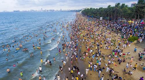 海南岛最大热带温泉滨海海岸的假日海滩
