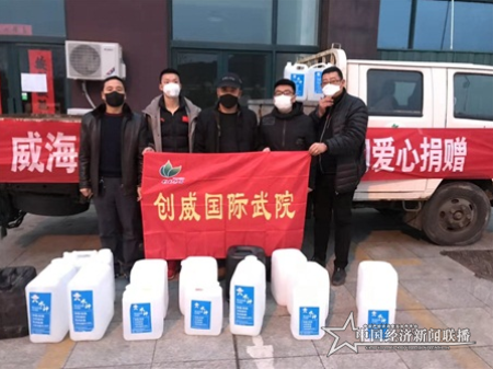 威海武术研究院,创威国际武院,水神环保负责人捐赠消毒水