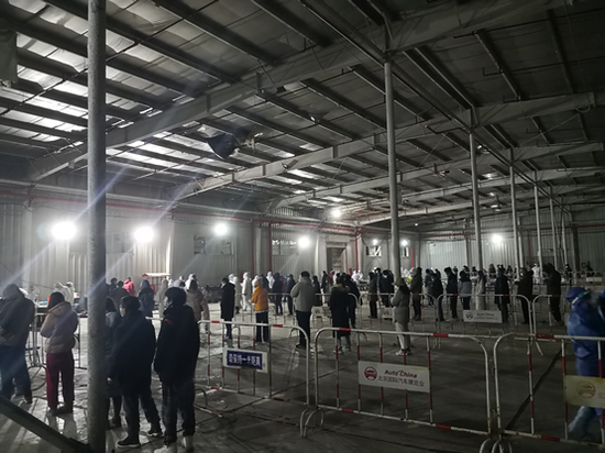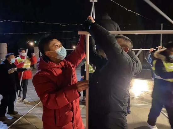 开完疫情防控工作会后,空港街道就紧急部署、快速行动,迅速确定核酸检测地点,25日3点前,他们是边在群里通知边做人员、物资准备工作,难免回复不及时。在排队人群高峰期的时候,工作人员不定时对环境进行消杀。