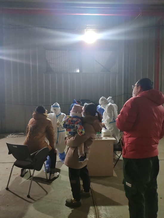 这期间,业主群里的信息没断过,来现场的人实时分享排队进度、温度、情况,社区工作人员还嘱咐大家多穿衣。在家里和在路上的人们,预估着自己检测时间,先在健康宝上预约大规模筛查,获得二维码后,再到现场排队,在社区工作者和志愿者的指引下进行纸质登记、分流排队,有序检测。几乎半分钟就可以完成一个人的采样工作——这就是城市的速度和温度在最末梢神经的体现吧。