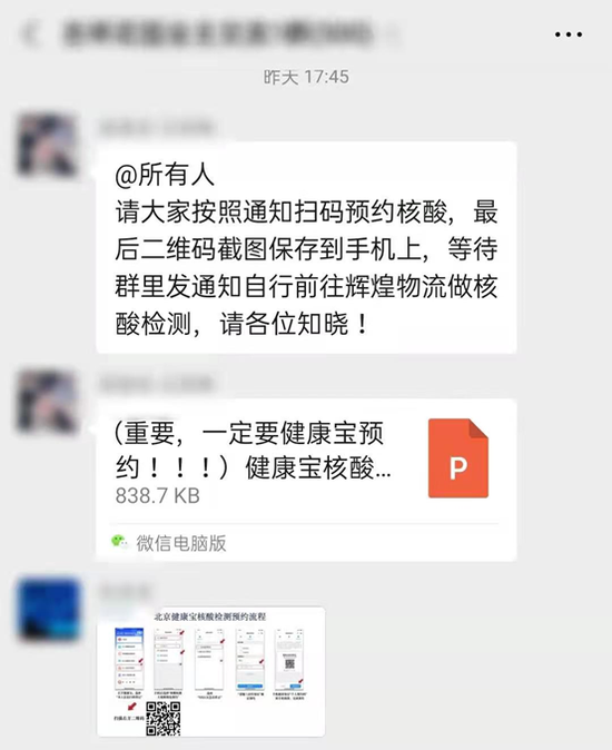 17:45分,群里再次发通知,系统修复好了,可以去做核酸检测了——