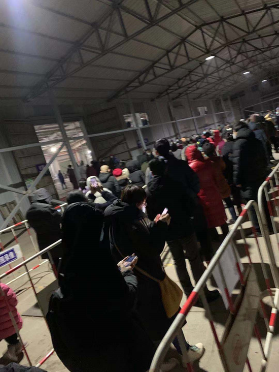 五六点去的大多是退休老人、孩子和正好在家休息的年轻人,排队的人并不多。时间到了21:00以后,望京“打工人”大批下班了,他们没回家直接去做核酸,排队的队伍开始越来越长,从仓库甩到了地铁桥下,又甩到京密路上,队伍长度超过1000米,22:30~23:00迎来了核酸检测最高峰期。