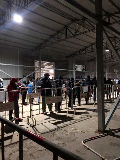 我做完核酸检测已经零点了,社区工作者和交警、保安还在现场维持秩序,有序组织居民排队,做检测的护士几乎一直保持一个姿势,像机器人一样动作迅速,12月的北京深夜温度都零度以下了,京密路的车少了,还有邻居们在陆续赶来,大家都在克服困难积极配合,为自己也为他人。
