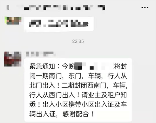 26日晚22:35分,物业发布小区封闭管理通知——