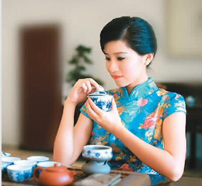 小亭四面来风,亭中几上水已沸,此时古筝声起,千回百转,绕在触摸紫砂茶壶的手指之间。将沸水注入壶中,略待片刻,隔着茶漏倒入公平杯,这时要观色,看茶汤颜色以及汤中杂质,接下来将公平杯中茶汤倒入茶盅,放在鼻口,这一下叫闻香,然后将茶水倒掉,不喝,这是第一道,为洗茶。第二道便可以喝了,然后再如此重复而为,直至茶色转淡。有人把按此程序饮茶的方法叫功夫茶。