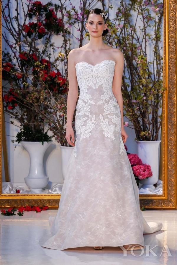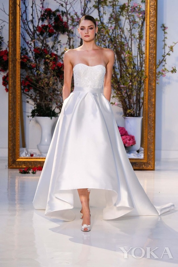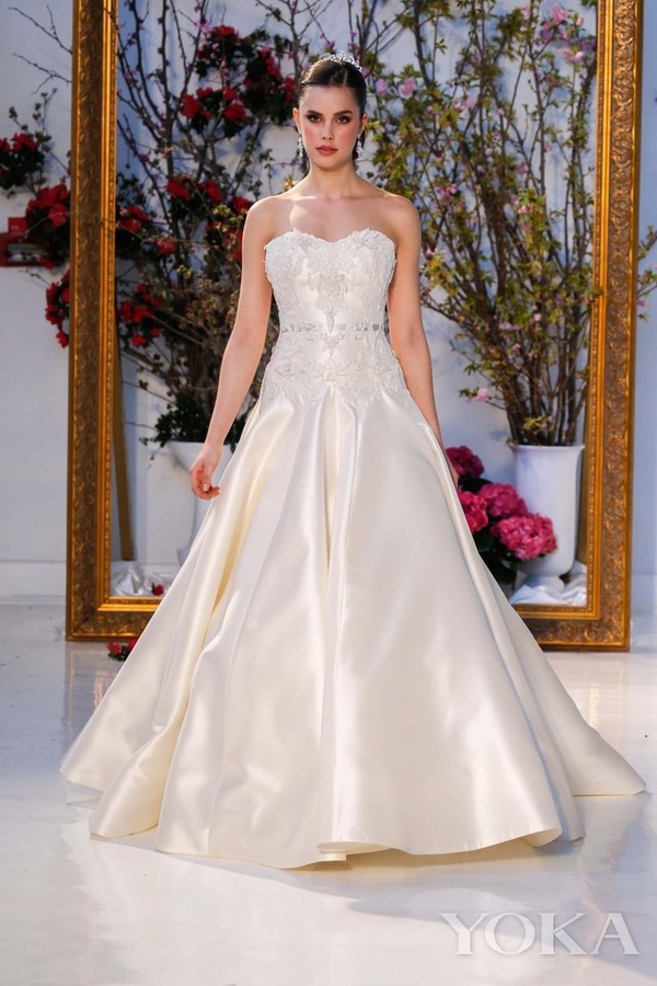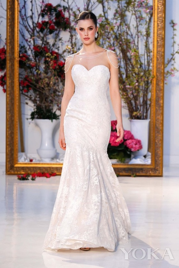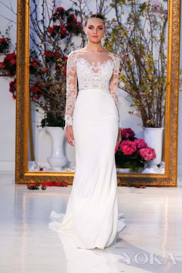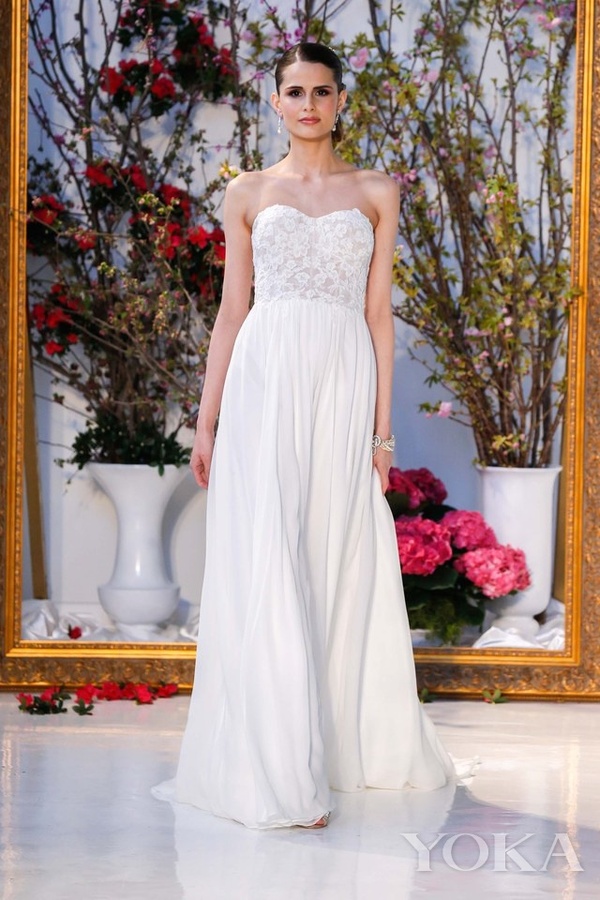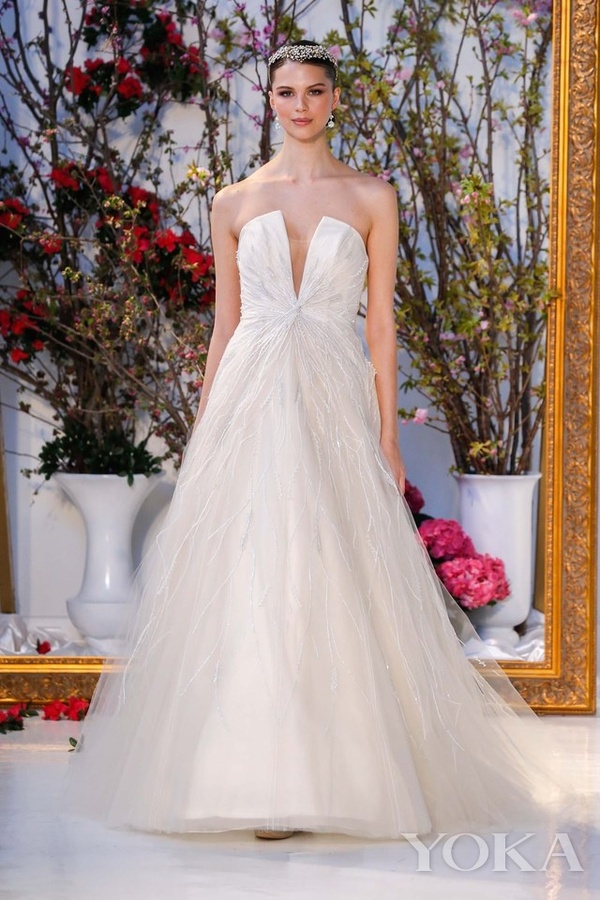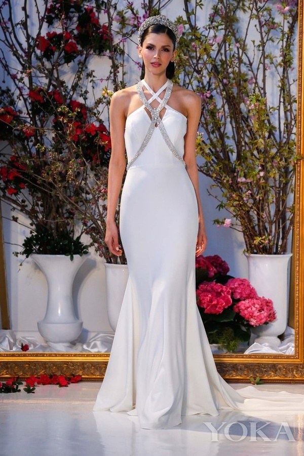 Anne Barge是纽约婚纱设计师,已经从业超过30年,擅长以精致的点缀装饰为重点,突出新娘柔美的一面。在新一季婚纱发布中,Anne Barge入流的玩了一把身体链,用各种钻石镶嵌的身体链来装饰抹胸婚纱,别具一格又充满时尚感。