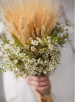 手捧花主要即是需用小麦,这非常符合秋季的色彩,并且还有丰盈的意义,感受自个在这个时节收成了爱情。小麦的外侧围绕着小野菊装修,显得非常的新鲜自然,非常合适美式村庄的婚礼!
