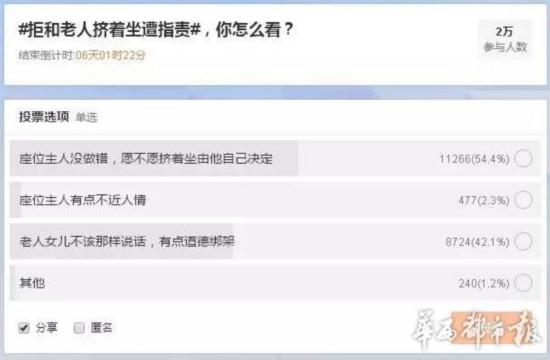 在两万多个网友中,仅有不到500名网友觉得女生拒绝和老人挤着座有点不近人情。下面来看看,网友们是怎么说的吧。