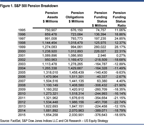 周一发布的报告当中,列夫科维奇(Tobias M. Levkovich)和其团队对美国企业的养老金压力进行了分析。