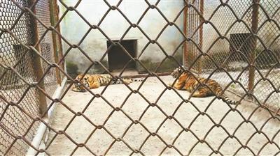 在休息区附近的动物展示区,北青报记者还看到了三只被关在笼子里的老虎,但笼子上并未标注老虎的品种。