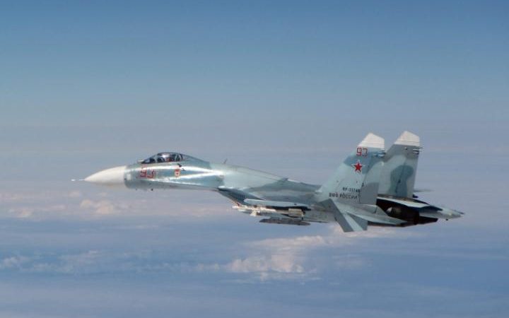 在波罗的海上空飞行的俄罗斯苏27战机