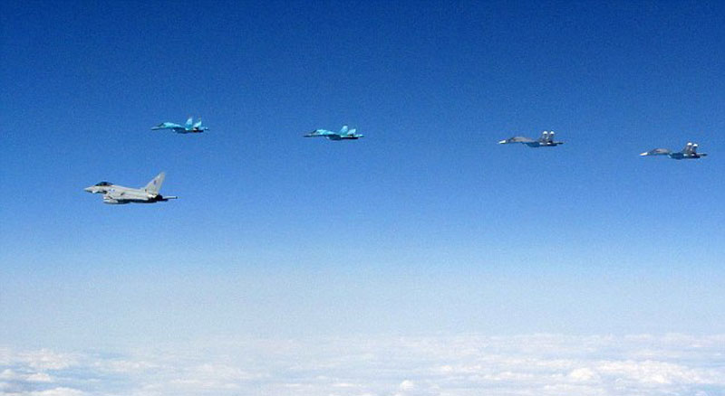 英国台风战机在波罗的海上空拦截俄罗斯苏27战斗机