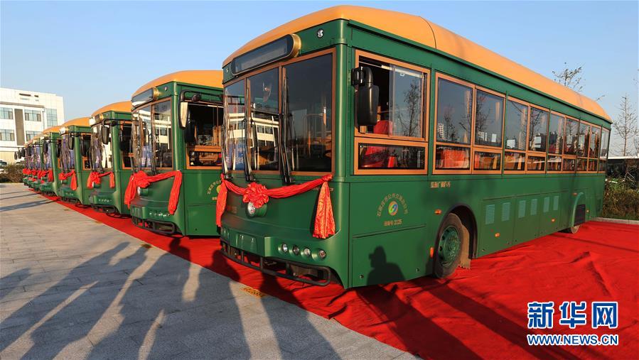 这是10月31日拍摄的即将上线运营的“铛铛车”。 11月1日,18辆“铛铛车”正式在河北石家庄市上线运营,运行线路包含市区内5大商业圈,采用5元一票制。 新华社发(郑荣玺 摄)