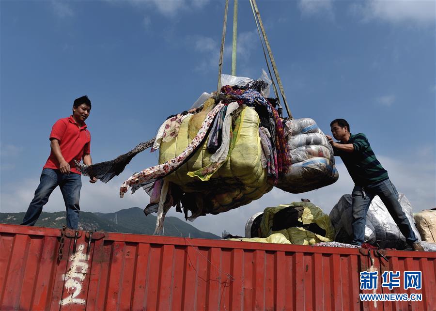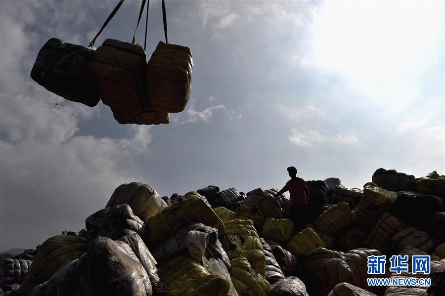 11月17日,工作人员在深圳土洋码头搬运走私废旧衣物。