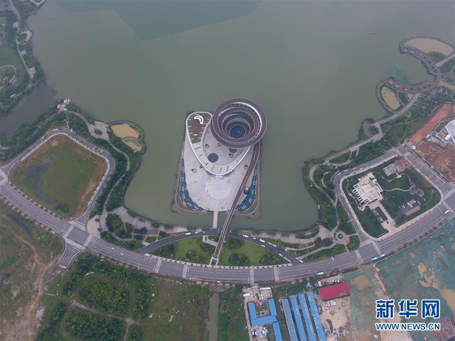 湖南长沙梅溪湖城市岛双螺旋观景平台全景(6月12日摄)。6月11日,完工后的湖南长沙梅溪湖城市岛双螺旋观景平台正式对外开放。从高空俯瞰其主体建筑,犹如湖中腾起一个“大漩涡”。据介绍,观景平台主体为纯钢结构建筑,高约35米,直径约80米。观景平台建成后,游客能欣赏到梅溪湖以及周边的全景风貌。新华社记者 龙弘涛 摄 图片来源:新华网
