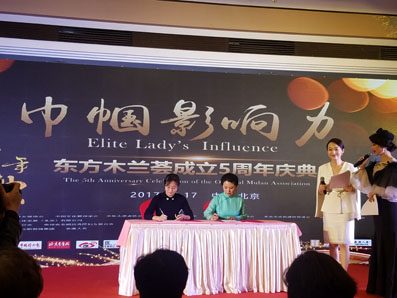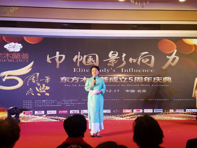 在庆典和颁奖晚宴上,东方木兰荟会长谭希松满怀深情地回顾了东方木兰荟成立五年来所走过的历程,她说:“我们每天都在做着有利于国家、社会、小家的事。使命呼唤担当,使命引领未来,让我们一起共筑‘中国梦’的磅礴力量!”