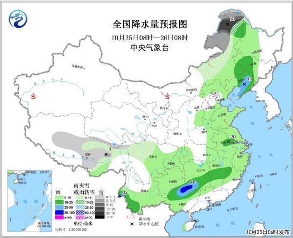 另外,雨雪天气也会铺展开来,东北雨雪停留时间较长。预计25日至27日,内蒙古东北部、东北地区中北部有雨夹雪或雪,其中内蒙古东北部和黑龙江西北部局地有暴雪或大暴雪;东北地区南部有中到大雨。