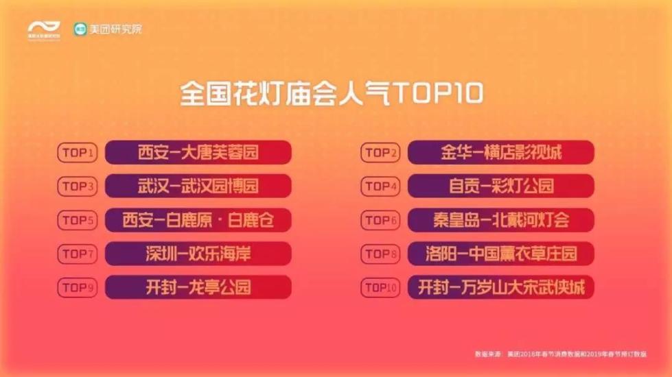 《报告》显示,春节期间花灯庙会同比增速94%,展览馆增速94%,祈福地增速47%。西安-大唐芙蓉园成为全国人气最高的花灯庙会。人们赶的不只是热闹,更是体验民俗的美好,感受传统年味。