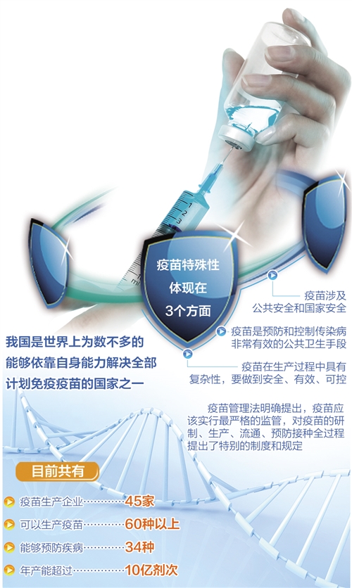 疫苗是特殊药品。国家药品监督管理局局长焦红指出,其特殊性体现在3个方面:首先,疫苗涉及公共安全和国家安全。其次,疫苗是预防和控制传染病非常有效的公共卫生手段。“它是预防性产品,是供健康人群使用的,其中的很大一部分是婴幼儿。”焦红说。再次,疫苗产品是生物制品,生物制品在生产过程中具有复杂性,这就意味着疫苗生产要做到安全、有效、可控。