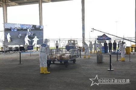 中国经济新闻联播郑州9月26日电 (屈伟林 李伟东 通讯员 王亚民)25日上午,由郑州海关组织的口岸核辐射突发事件应急处置演练在郑州新郑国际机场举行。河南省公安厅、省生态环境厅、省卫生健康委员会、机场集团等联防联控部门共计70余人参加演练。