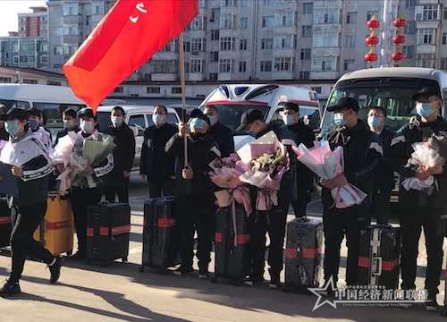 仪式首先由孙坤为驰援牡丹江医疗队授旗,接着医疗队代表作表态发言。最后由李思勇作动员讲话。