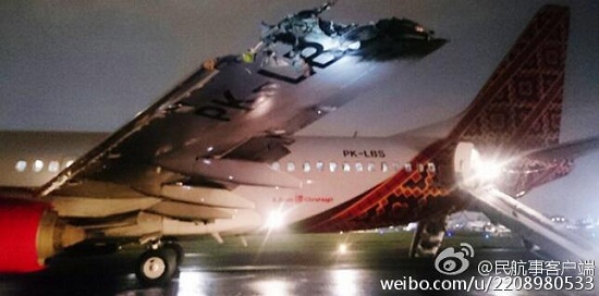 当地时间4月4日,Batik航空一架波音737飞机和Transnusa的ATR42飞机在雅加达Halim机场跑道上相撞。Batik Air的波音738机翼起火,ATR42飞机垂直尾翼被波音737削去。事故幸无人死亡。Batik Air发表声明表示,机组收到指令可以起飞,在起飞过程中撞上ATR飞机。随后机组紧急刹停飞机。当地时间4月4日,Batik航空一架波音737飞机和Transnusa的ATR42飞机在雅加达Halim机场跑道上相撞。Batik Air的波音738机翼起火,ATR42飞机垂直尾翼被波音737削去。事故幸无人死亡。Batik Air发表声明表示,机组收到指令可以起飞,在起飞过程中撞上ATR飞机。随后机组紧急刹停飞机。