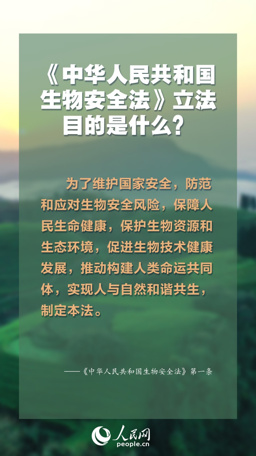 这部法律的出台,在生物安全领域形成国家生物安全战略、法律、政策“三位一体”的生物安全风险防控和治理体系,强化了防控重大传染病和动植物疫情的法律制度,集中体现“以人为本”的立法原则,让生物技术发展更好服务于国家发展、人民幸福、人类文明进步。什么是“生物安全”?发现传染病、动植物疫病时该如何做?一起来了解。