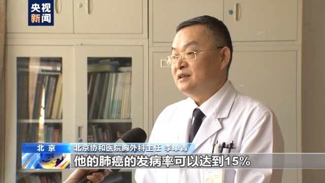 京协和医院胸外科主任 李单青:每天一个人抽烟10根到20根的,他的肺癌发病率可以达到15%,如果抽烟一天20到40支的可以上升到28%,每天如果抽烟量超过40支以上的,立马就翻番,就是说抽烟以后造成的肺癌发病率就可以达到68%。