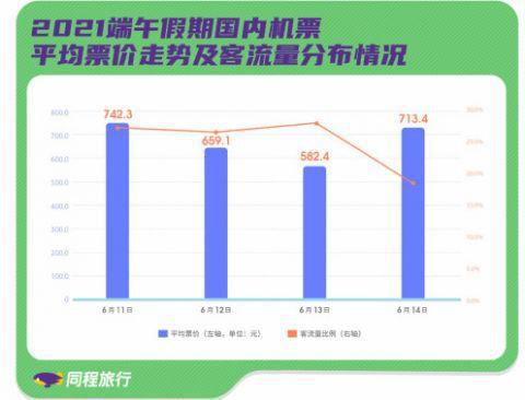 同程旅行端午机票预订数据显示,国内民航机场端午期间的客流高峰预计将出现在6月11日和6月13日两天,分别为假期前一日和假期第二天。由于端午假期的长途出行需求占比相对较低,端午的机票平均价格较今年的五一长假下降了三成左右,平均票价约为670元(不含机建燃油费,下同)。其中,放假前一日的机票最贵,平均价格为742.3元。端午期间民航国内热门航线主要以北京、上海、成都、重庆、杭州、昆明等核心城市的进出港航班客流量最大。