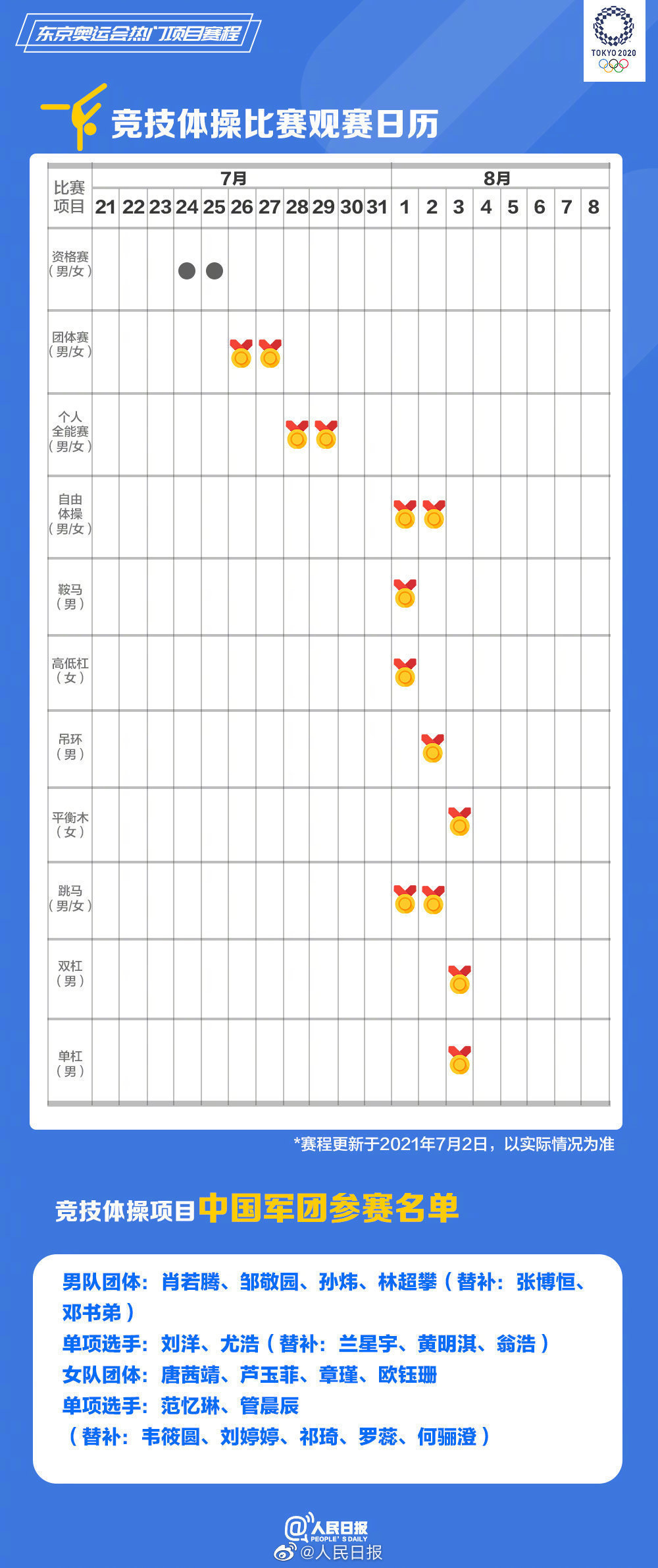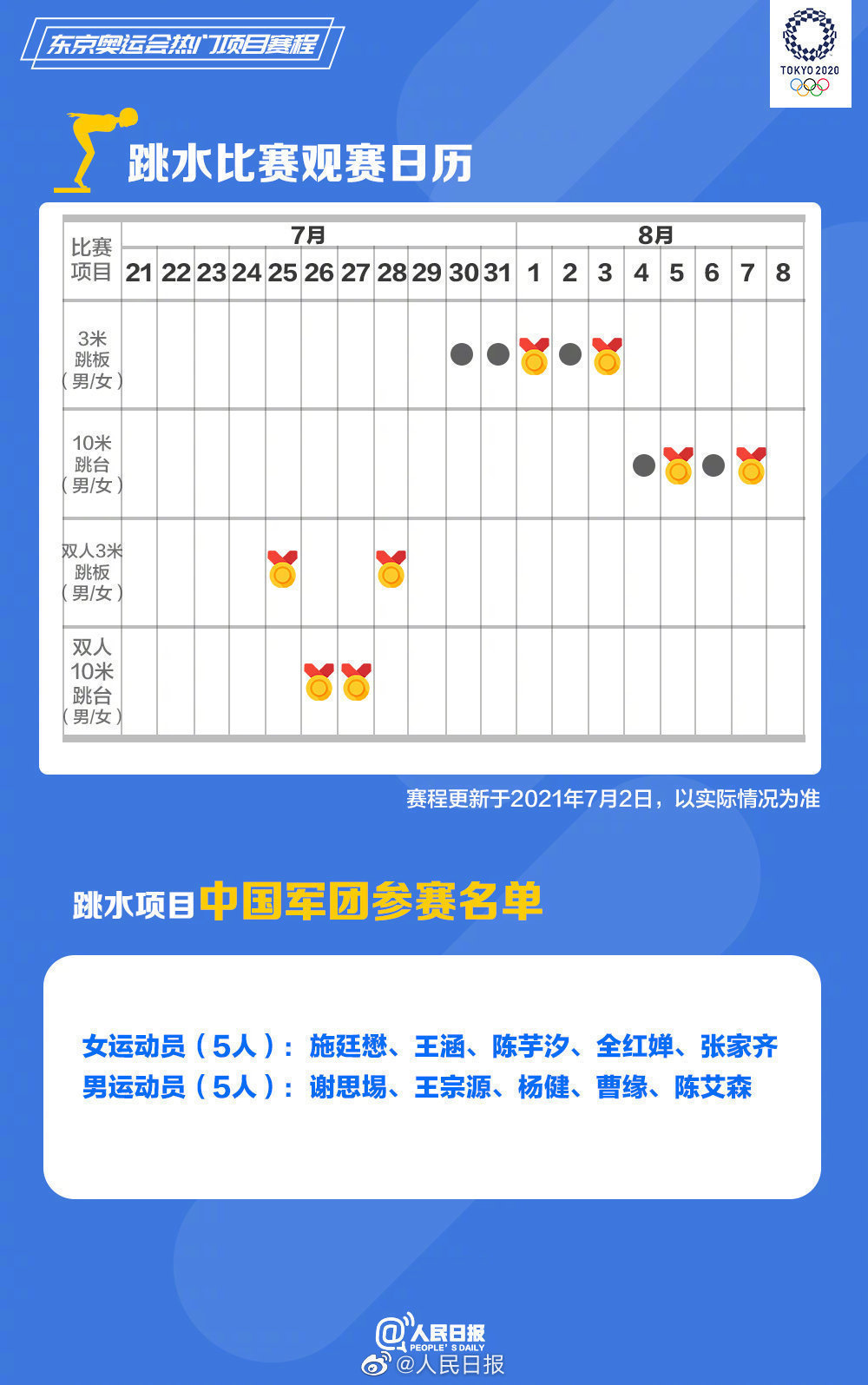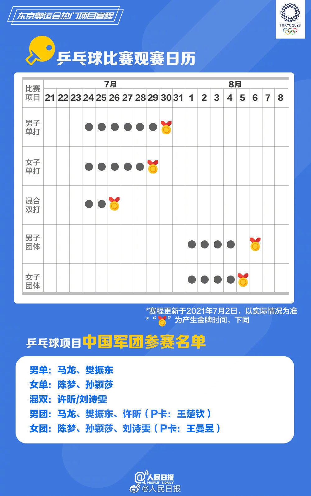 距东京奥运会开幕只剩不到两周,中国多个项目代表队公布奥运名单。乒乓球、羽毛球、跳水、游泳、女排…你关注的比赛什么时候进行?将在哪天产生金牌?有你喜爱的运动员吗?收藏这份东京奥运会赛程,一起看奥运,中国队,加油!