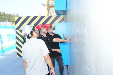 在清水样板展示区,观摩人员就项目前期清水混凝土配合比小样试验过程、模板加工和安装注意要点及1:1样板验证试验等一系列清水混凝土工序控制要点进行讨论交流。