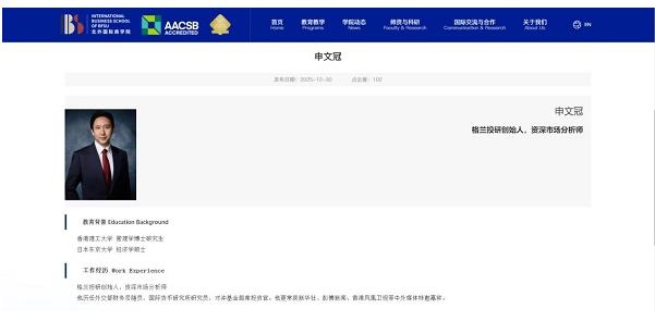 据了解,申文冠先生凭借在金融领域的丰富经验、卓越业绩及学术积累,已初步规划系列教学举措:参与课程设计、案例教学、论文指导等工作,助力学生提升宏观理论、机构实操、市场分析等综合能力。传播最前沿的金融知识,包括AI驱动下的产业变革、全球供应链的重构等。